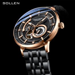 【SL332】梭伦绘画艺术星空多功能镂空男士机械腕表