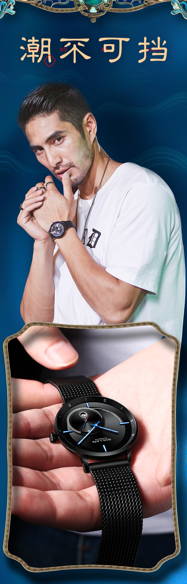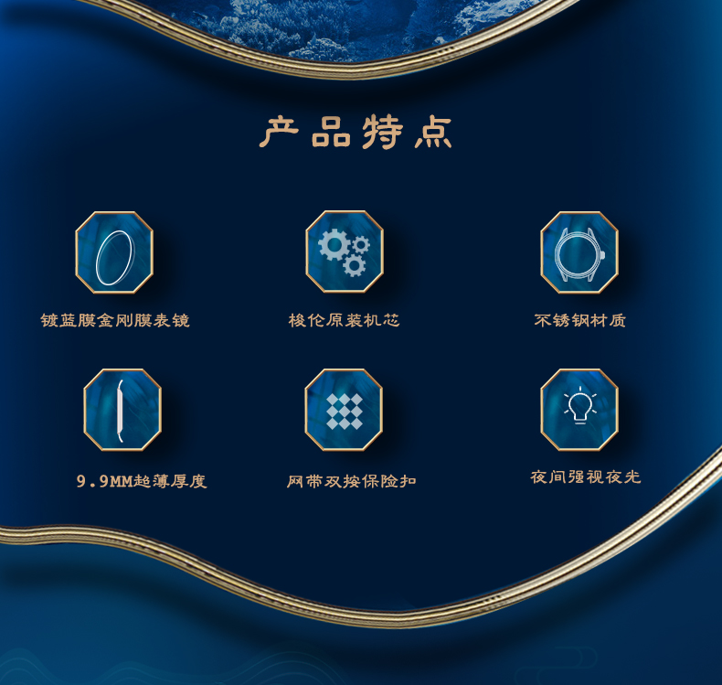 【材质工艺】:精选不锈钢锻造表壳;表镜材质均采用镀蓝膜金钢膜玻璃表镜,高品质,持久耐用