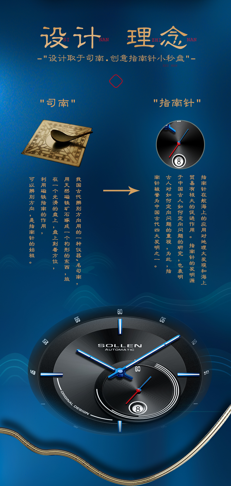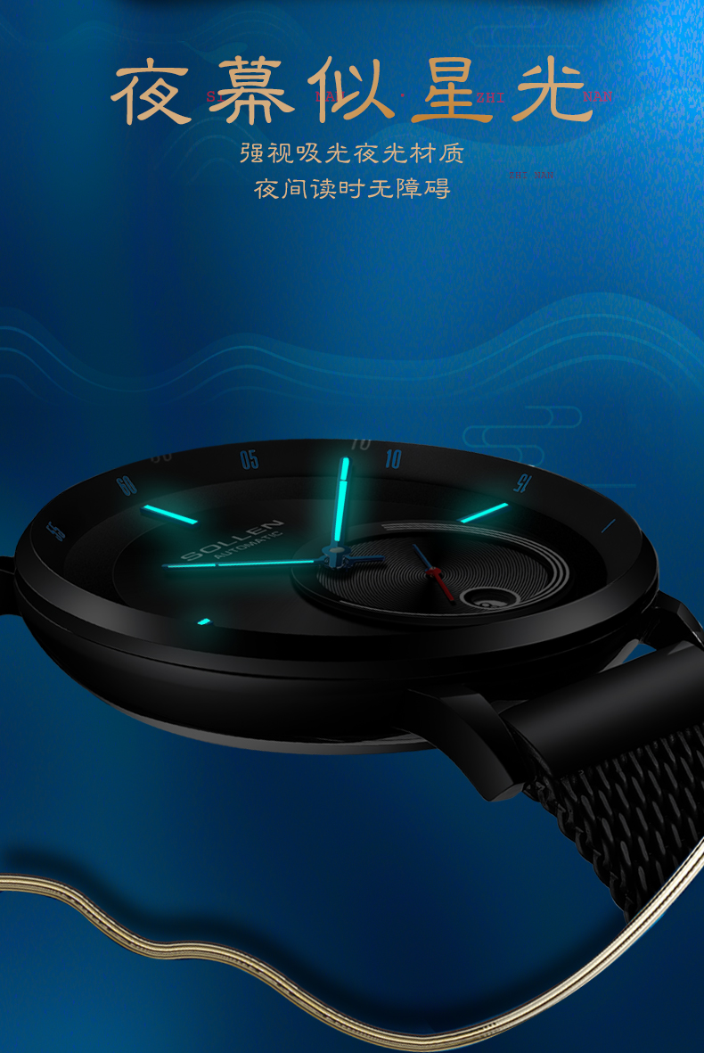 【设计创意】:来源于天文星轨,恒星在夜之苍穹下的移动轨迹。把夜空中恒星的移动的光影轨迹融入到小盘的设计。