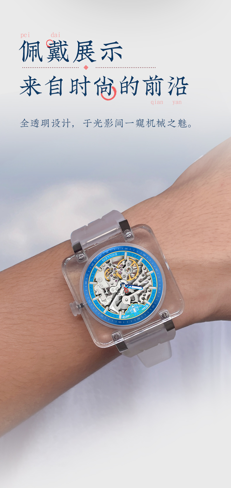 【SL325】梭伦国潮方形琉璃系列镂空机械男士手表