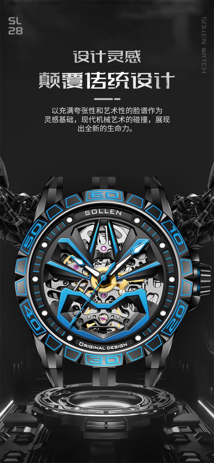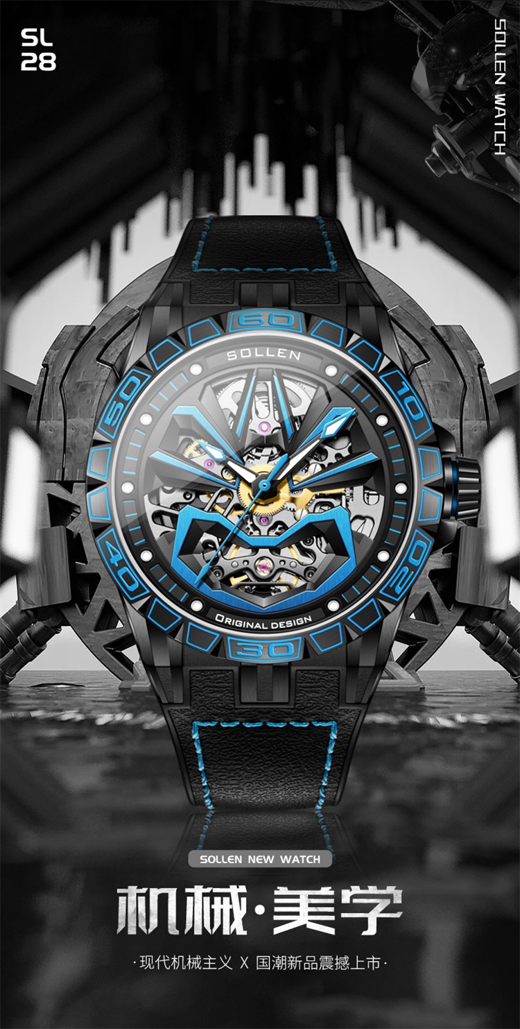 【SL328】梭伦脸谱系列国潮镂空男士机械手表