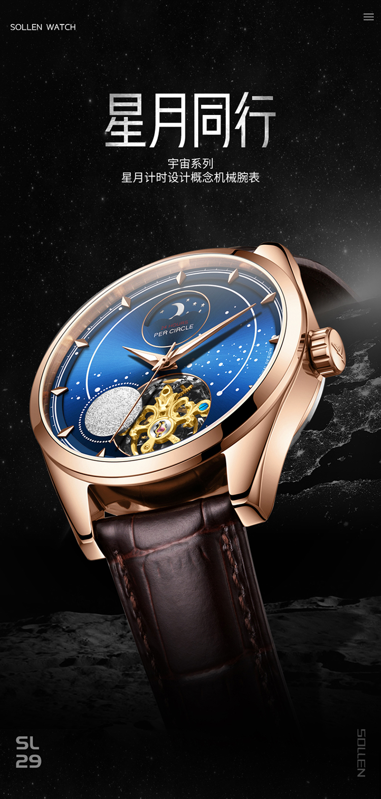【SL329】梭伦宇宙系列星月计时设计概念机械腕表