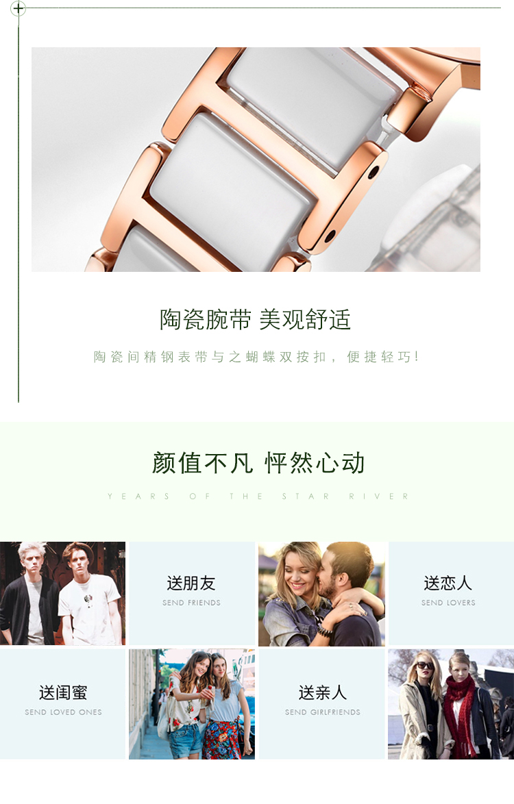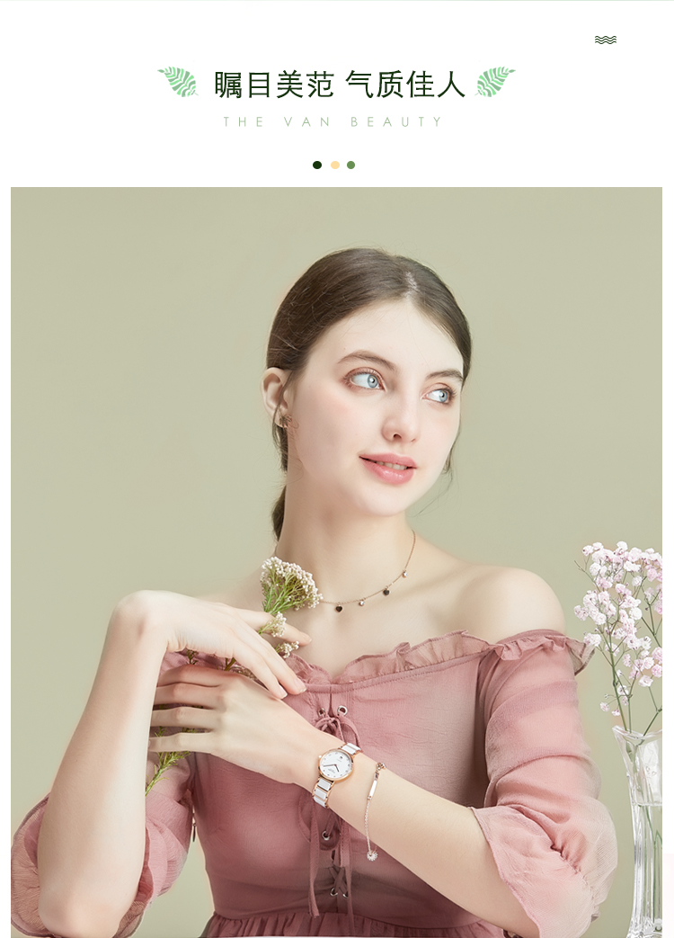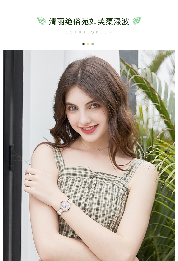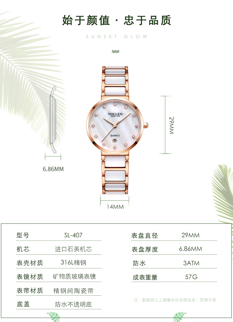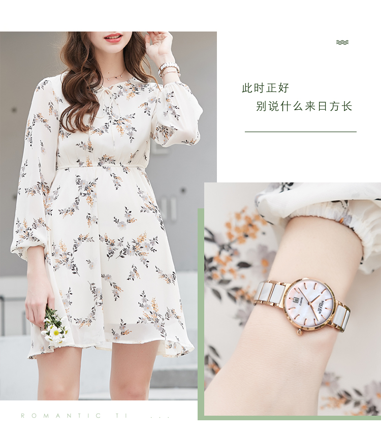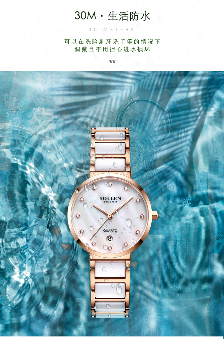【款式卖点】:梭伦陶瓷系列女表,优雅的设计和陶瓷工艺的巧妙融合,为这一腕表注入新内涵。