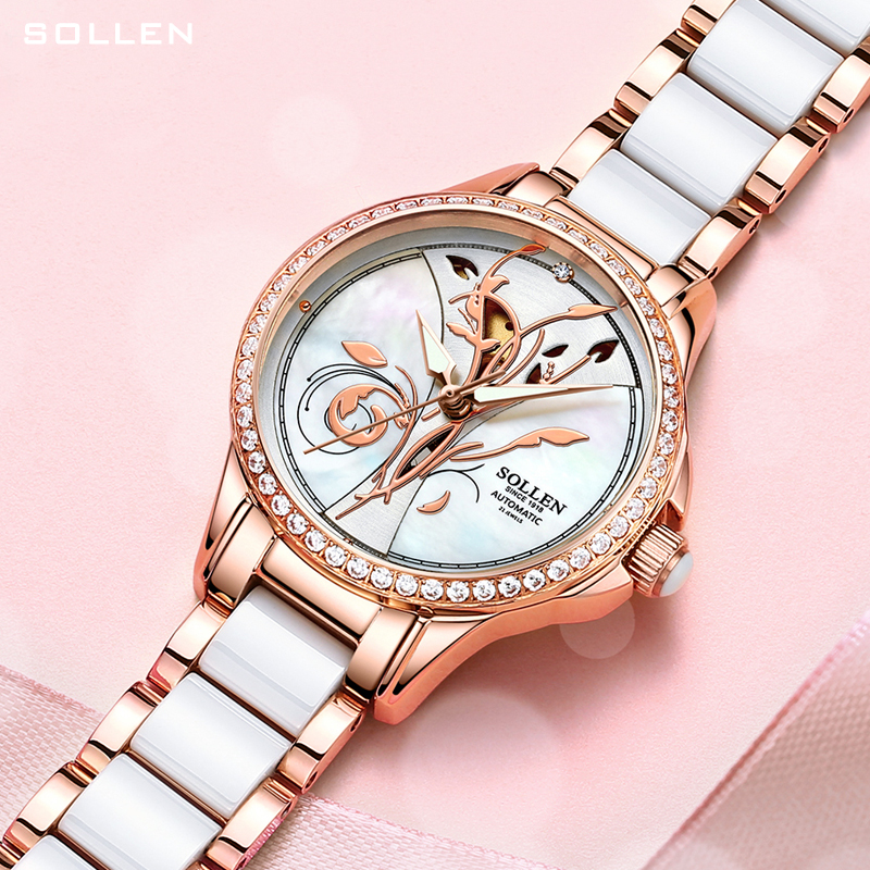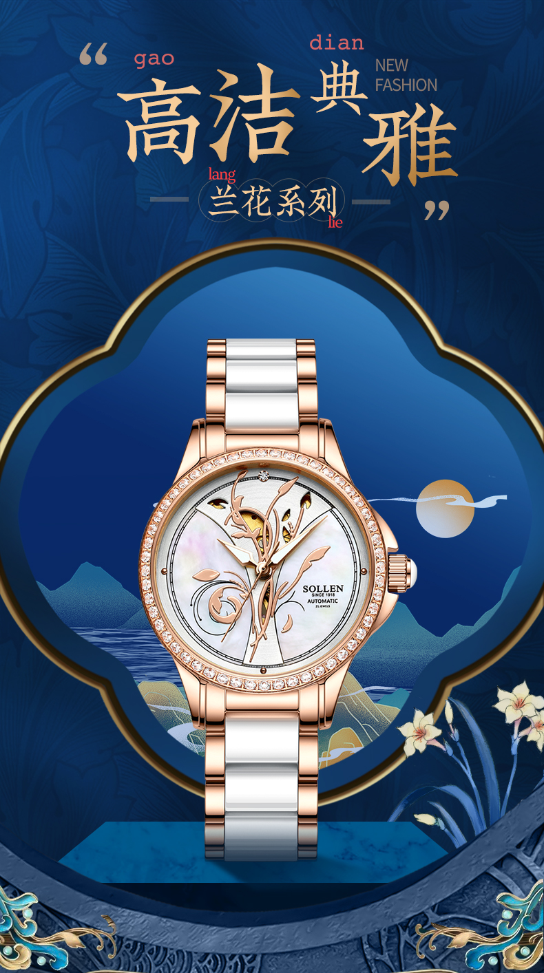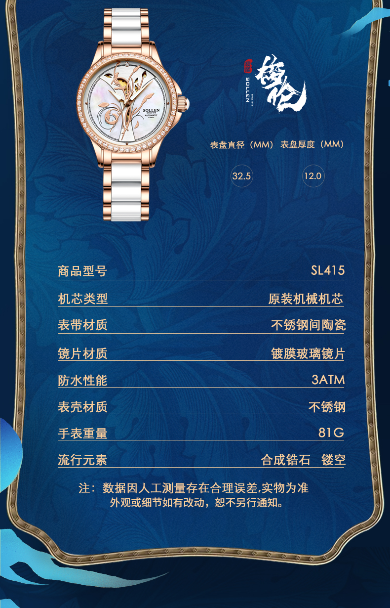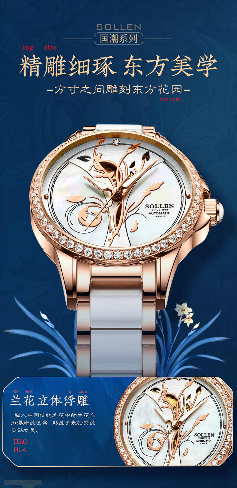 【SL415】梭伦原创兰花绚丽淡雅机械女表