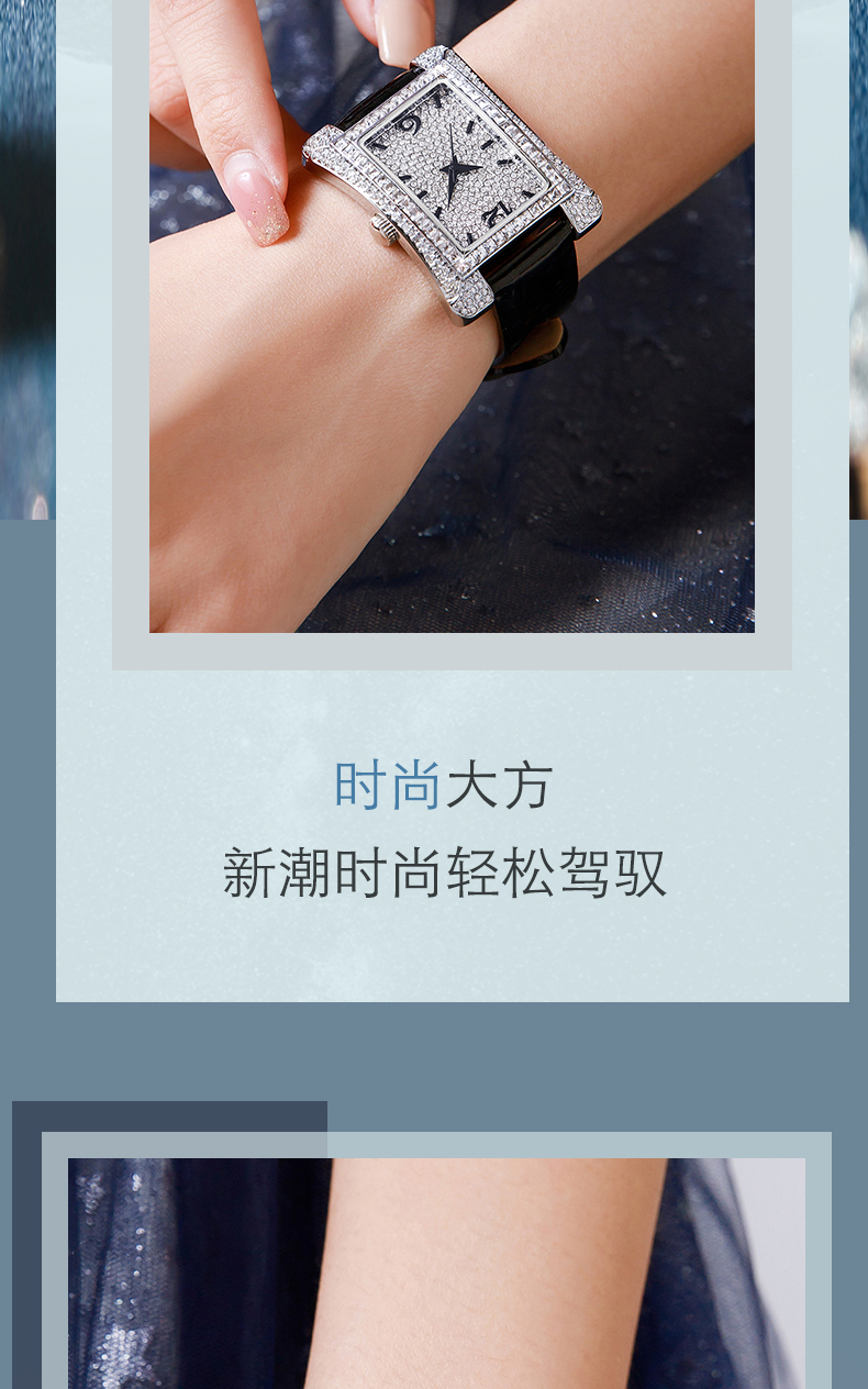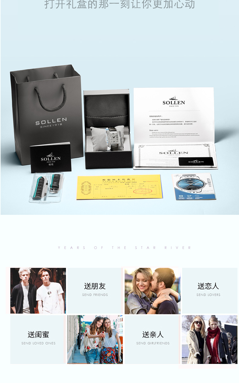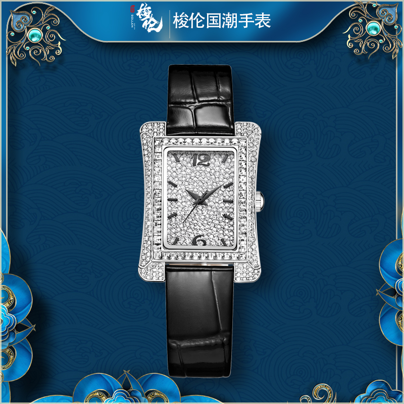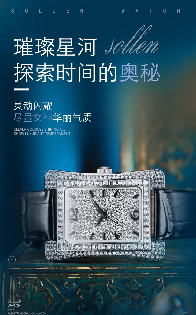 1、梭伦经典小蛮腰设计女表采用曲线表壳设计,优美的弧度构成舒适的佩戴感,采用精美元素,奢华合成锆石璀璨带来经典奢华美感。