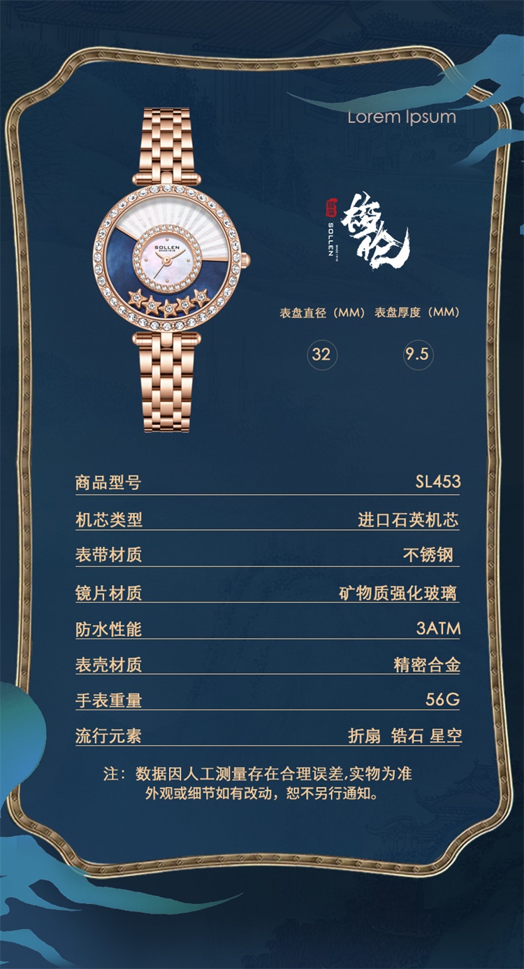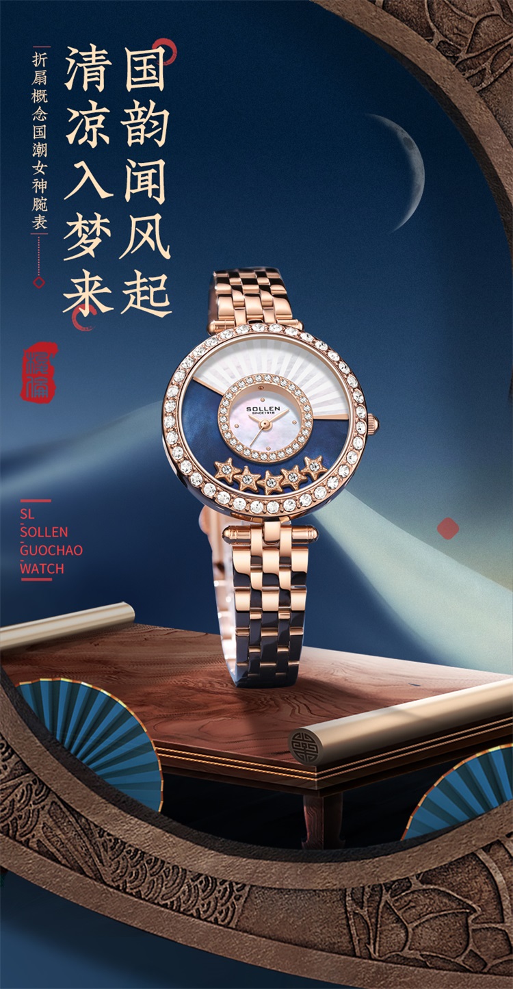 【SL453】梭伦国韵摇风设计石英女士腕表