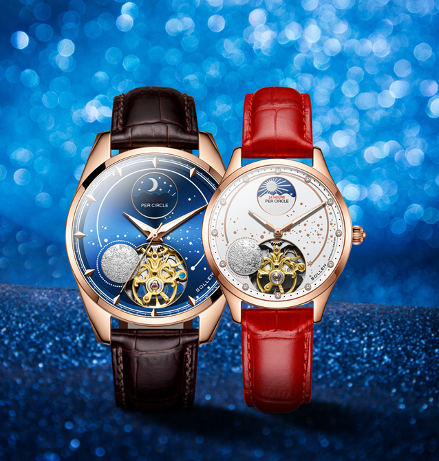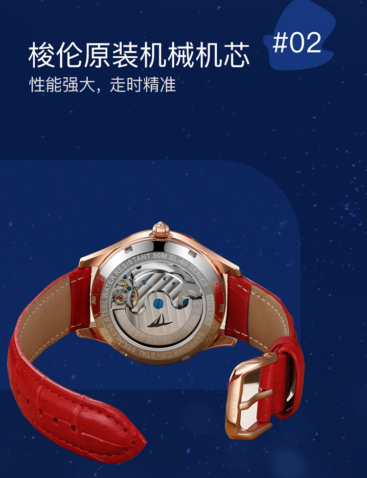 【SL535】梭伦情侣系列日月星辰镂空时尚百搭情侣表机械对表