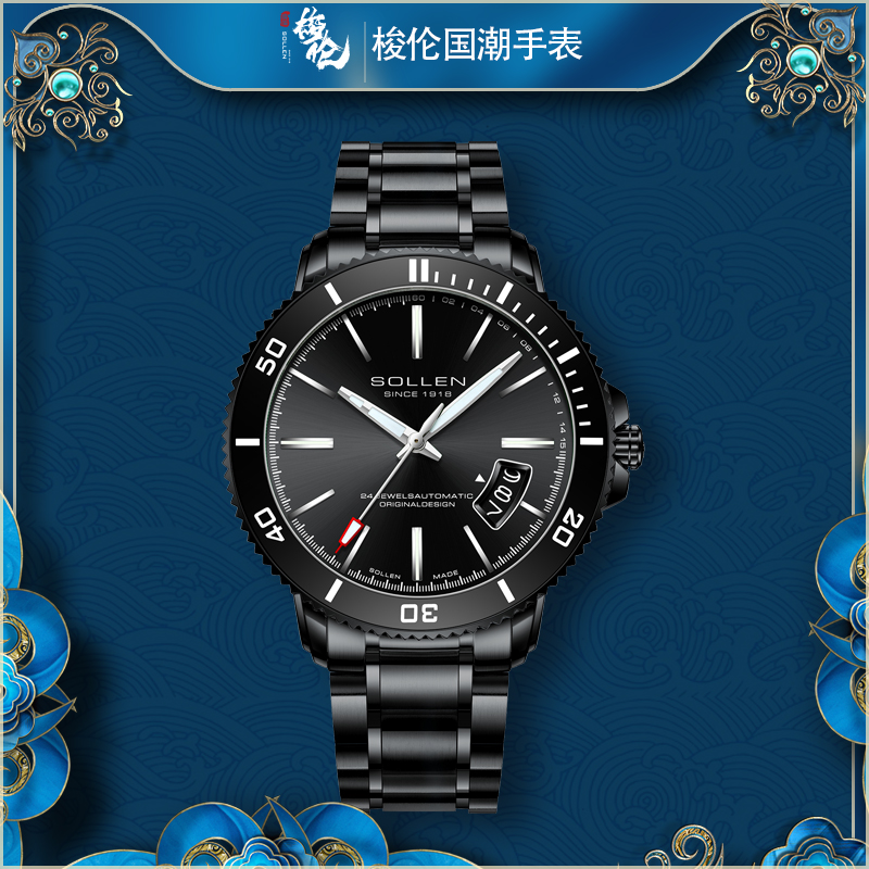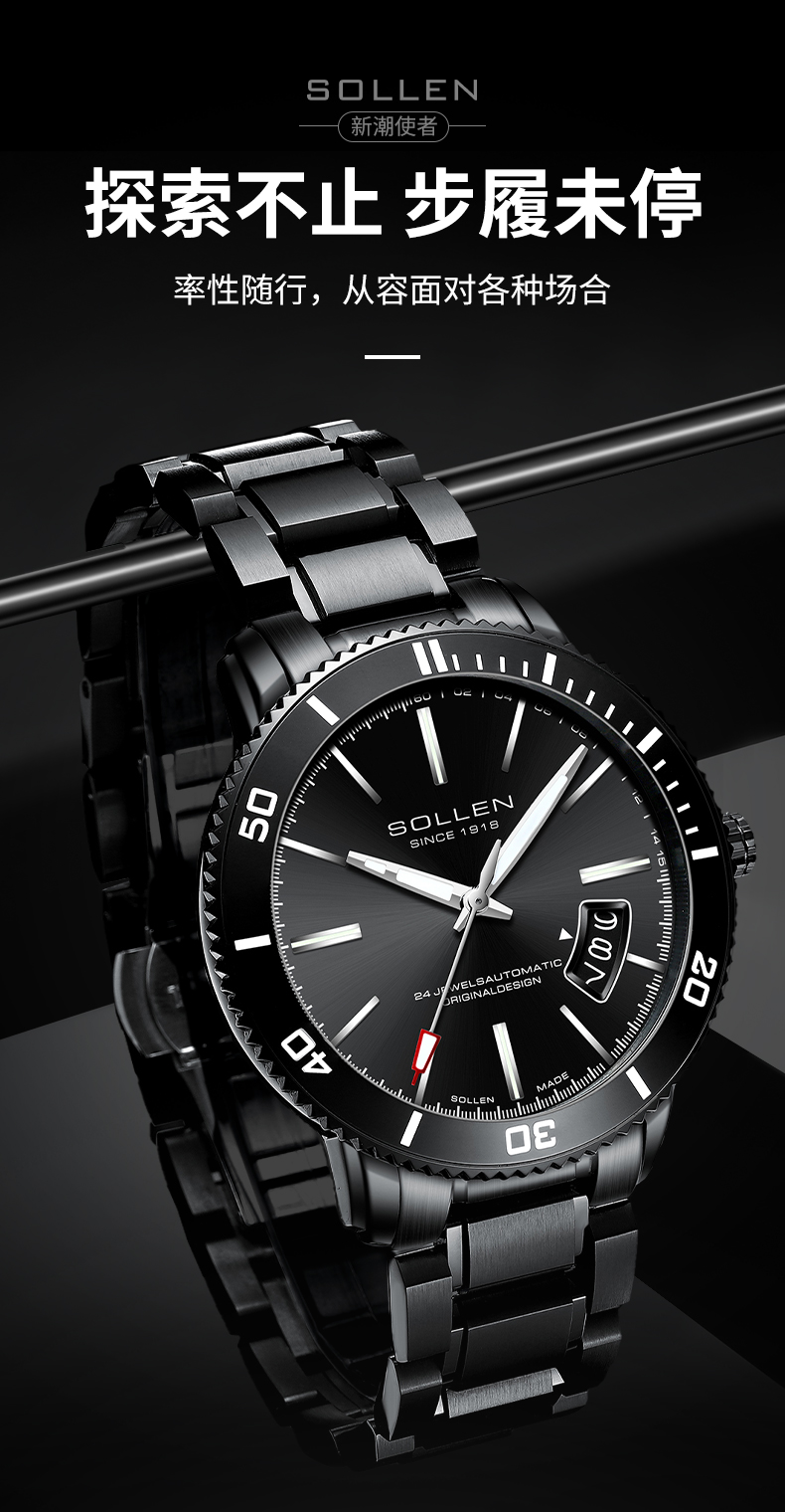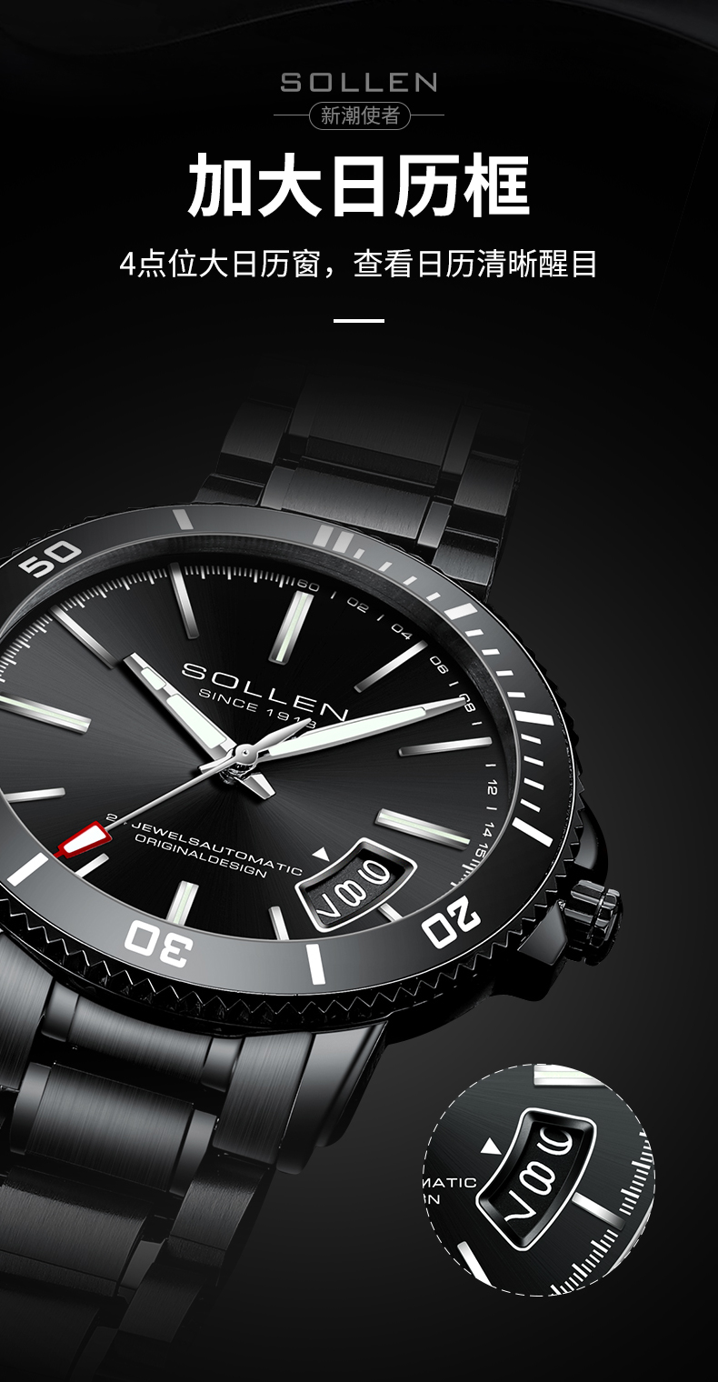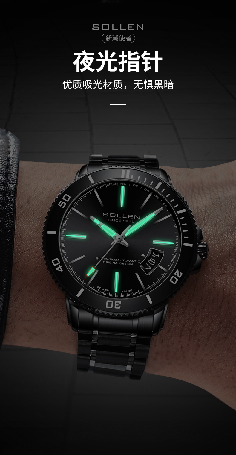 【SL609】梭伦男士全自动机械时尚商务镂空夜光多功能表