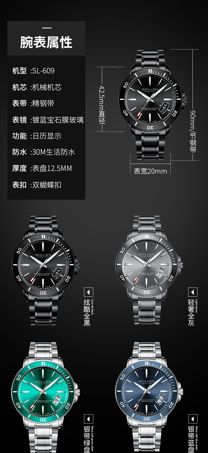 成为第一个评论 “【SL609】梭伦男士全自动机械时尚商务镂空夜光多功能表” 的人