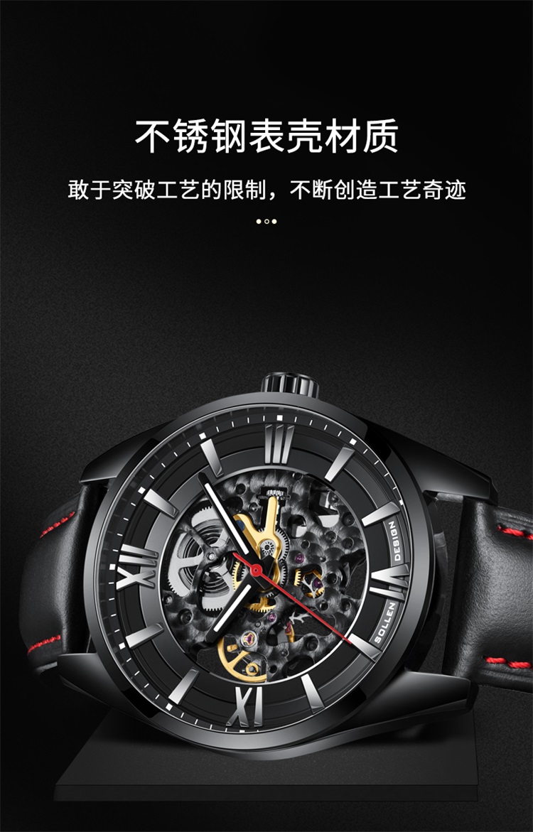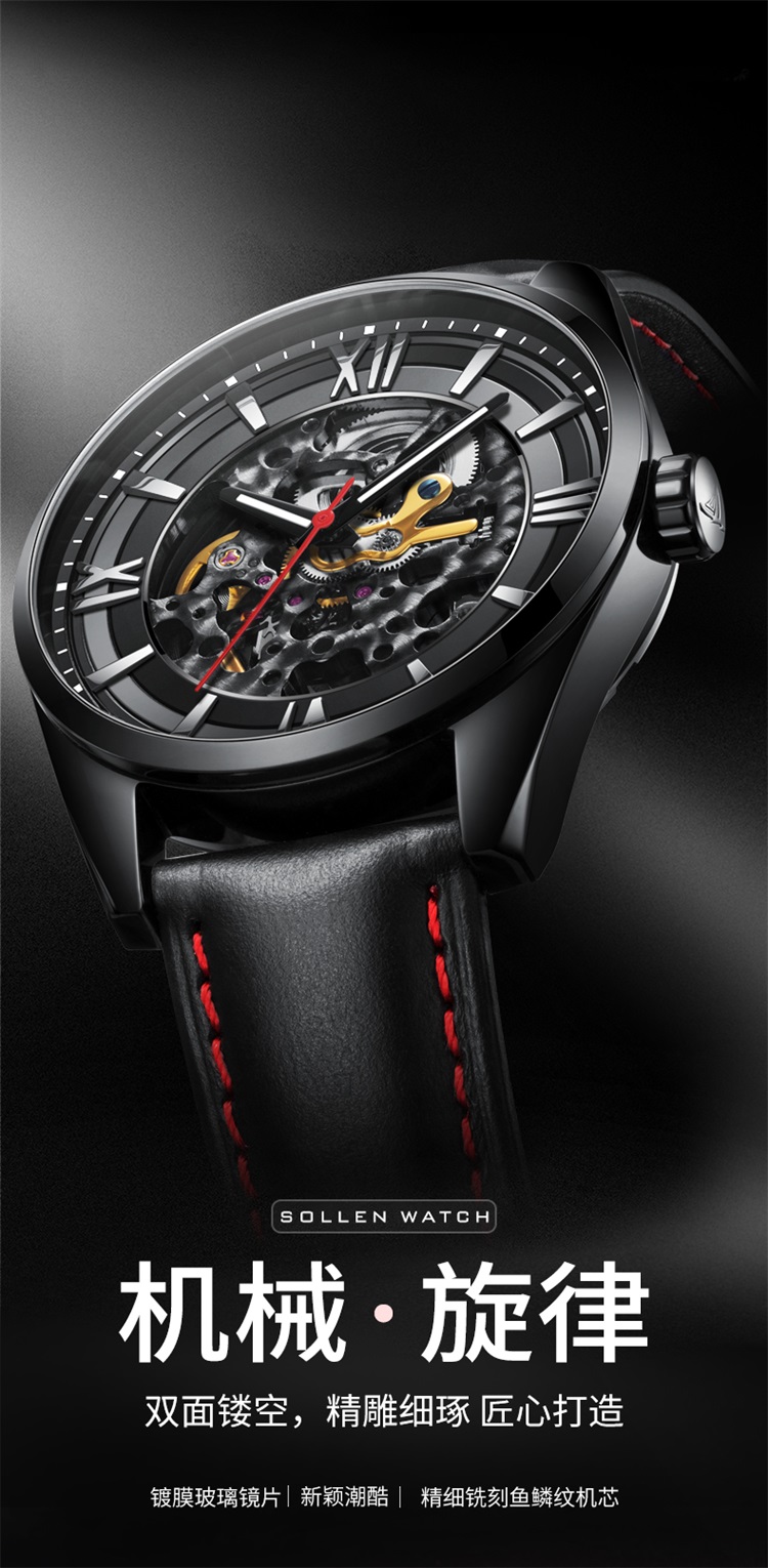 【SL615】梭伦谜航系列男士缕空全自动机械霸气男表