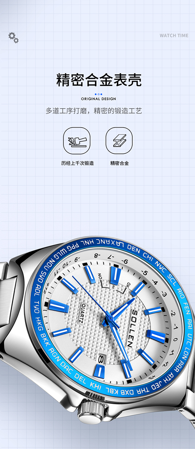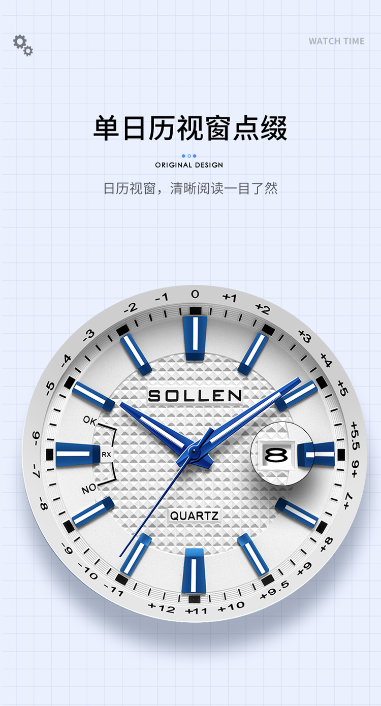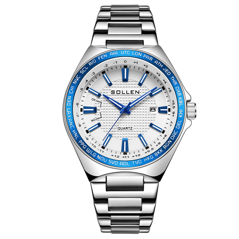 【SL710】梭伦优雅日历大气钢带男士石英表