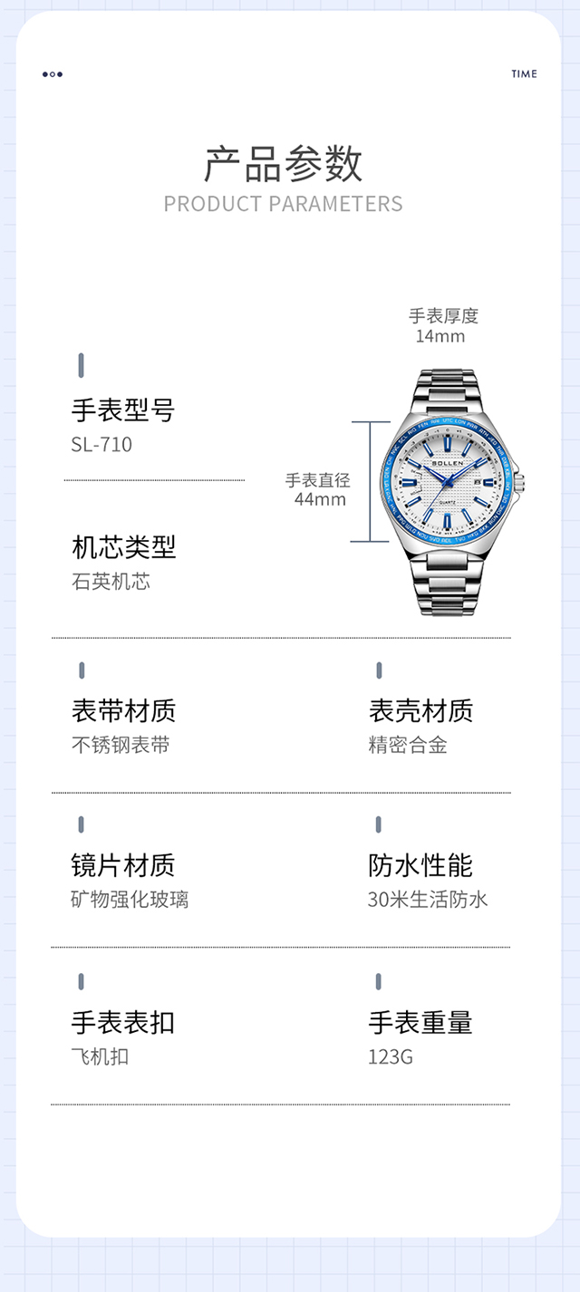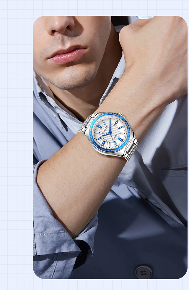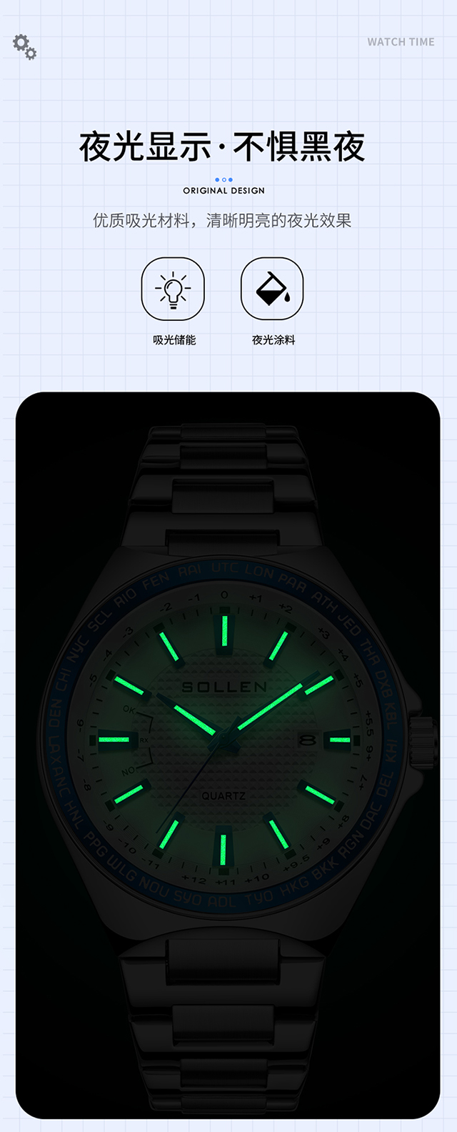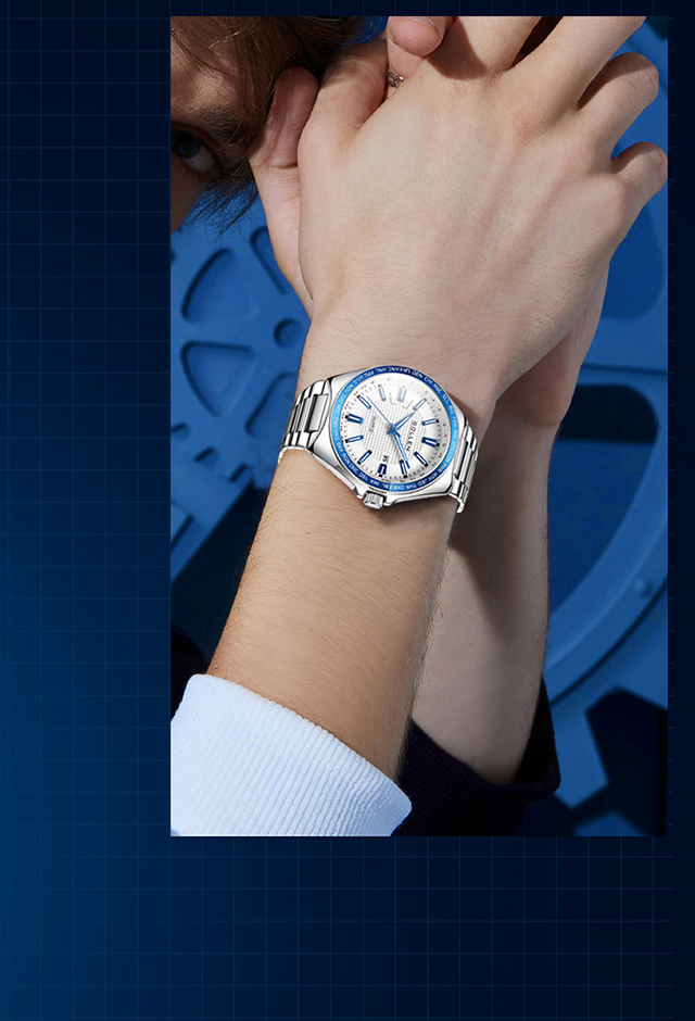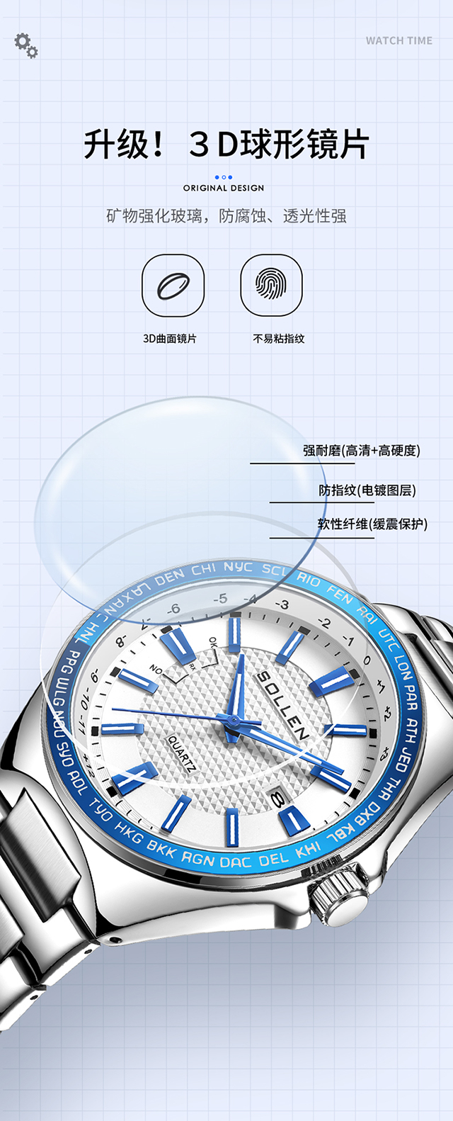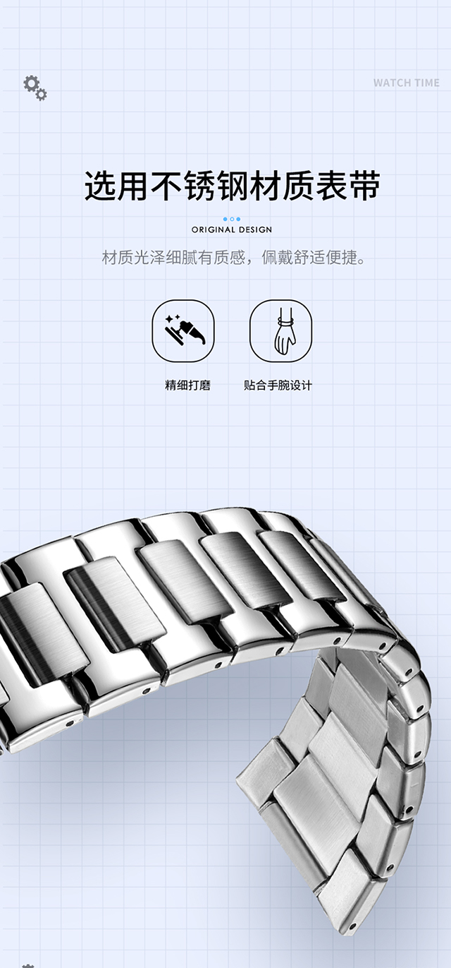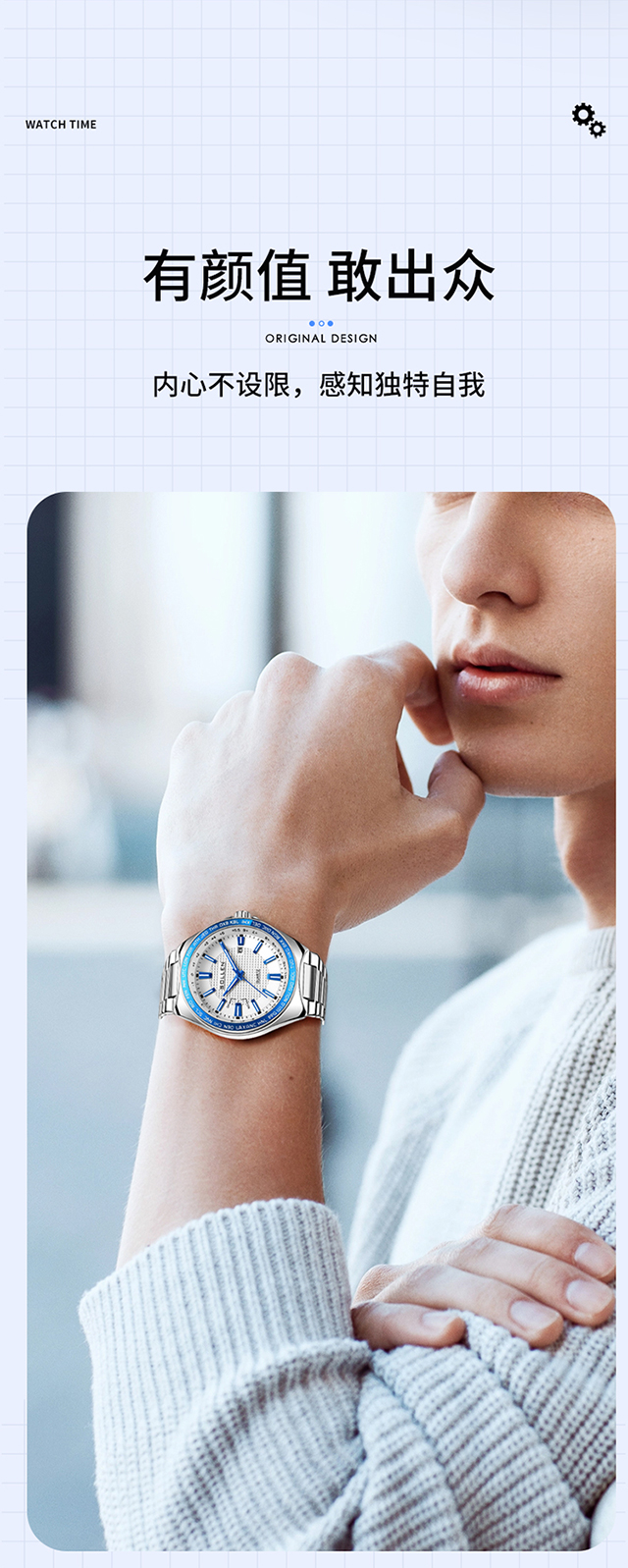 3、矿物质强化的玻璃镜面,如同清晨露珠滑落的荷叶,晶莹剔透,既抵御了日常磨损的侵扰,又让时间的展示更加清晰无碍,精选不锈钢表带,更是腕间的一道风景线。冷冽的金属光泽,在光线的照耀下更显高级质感