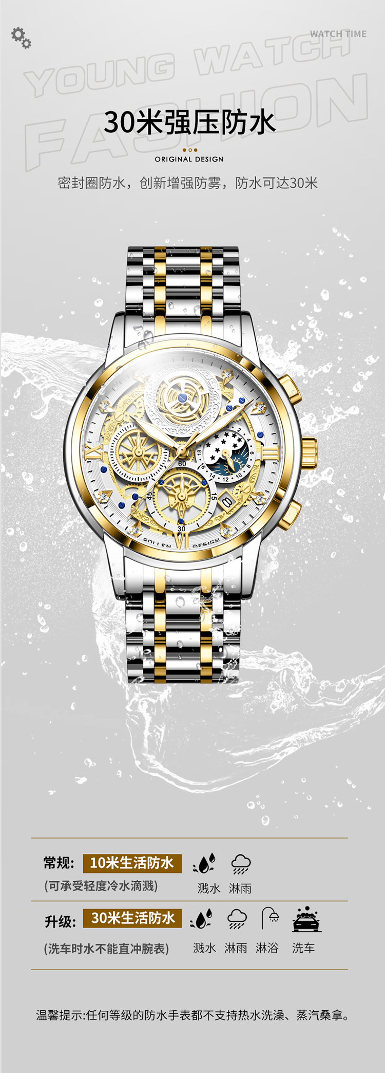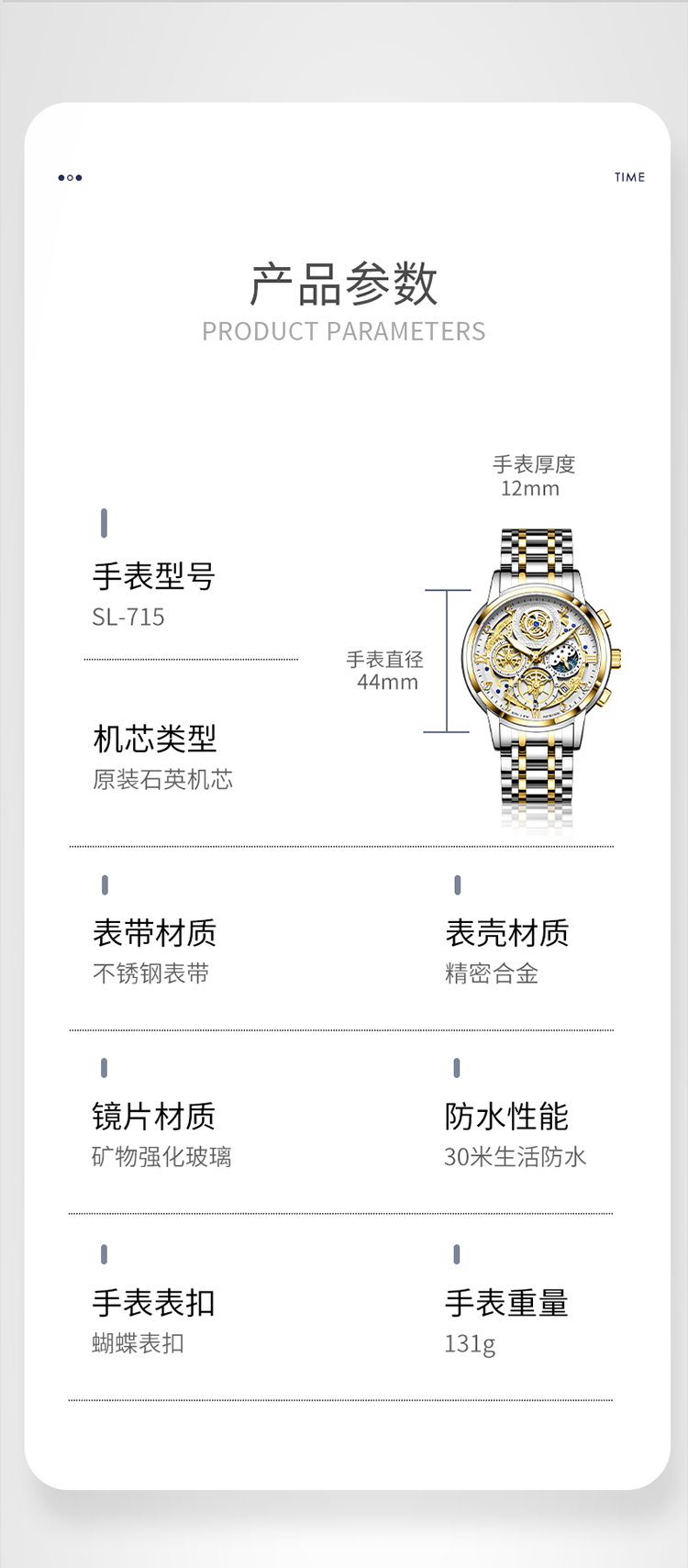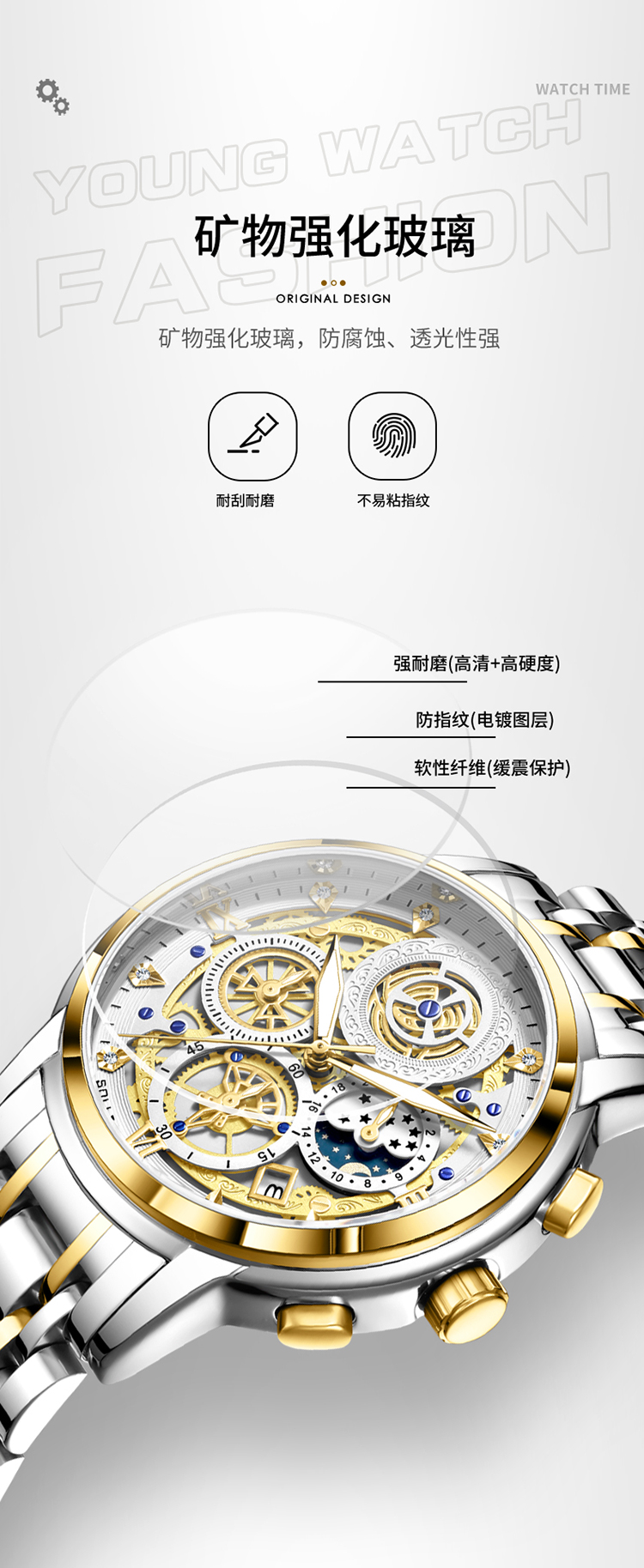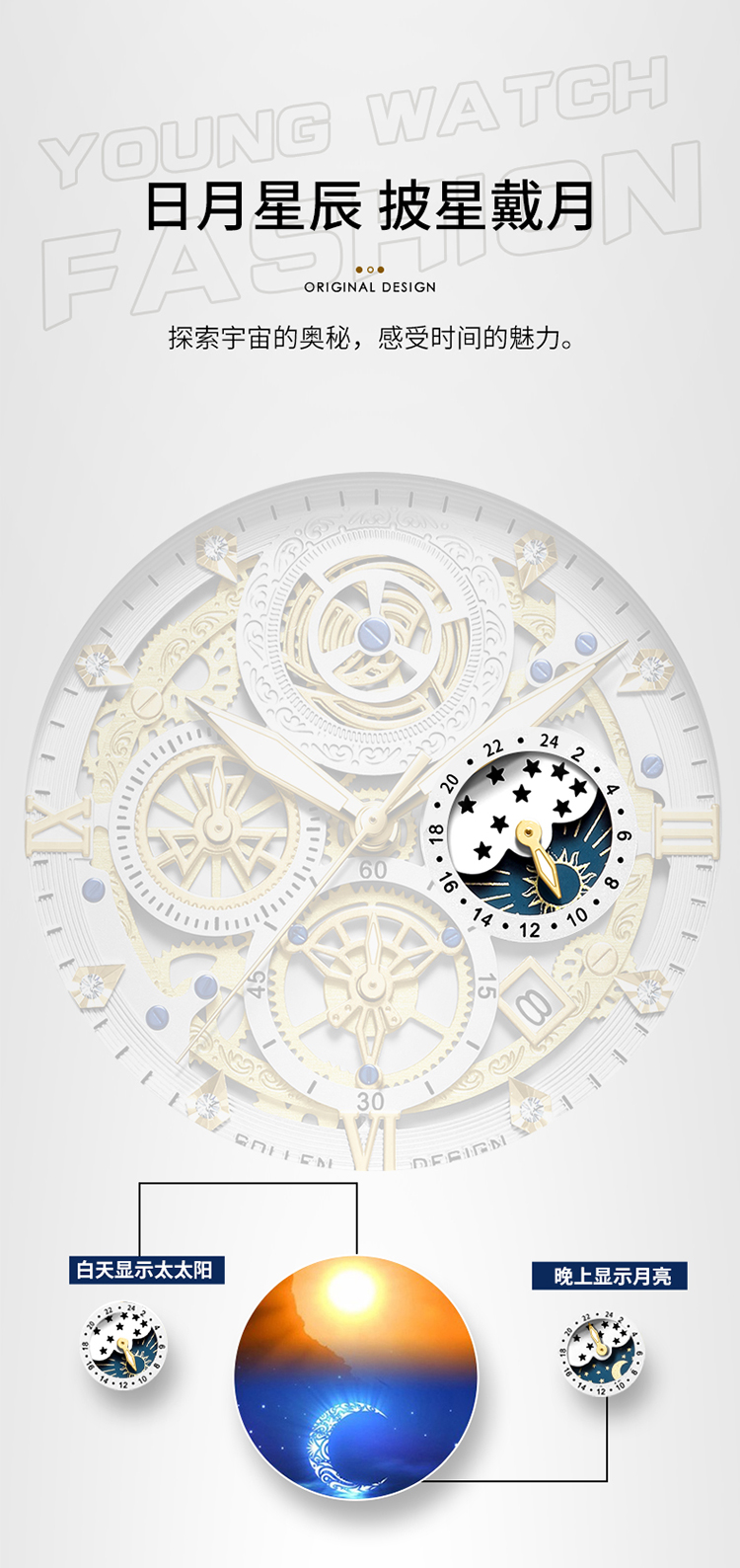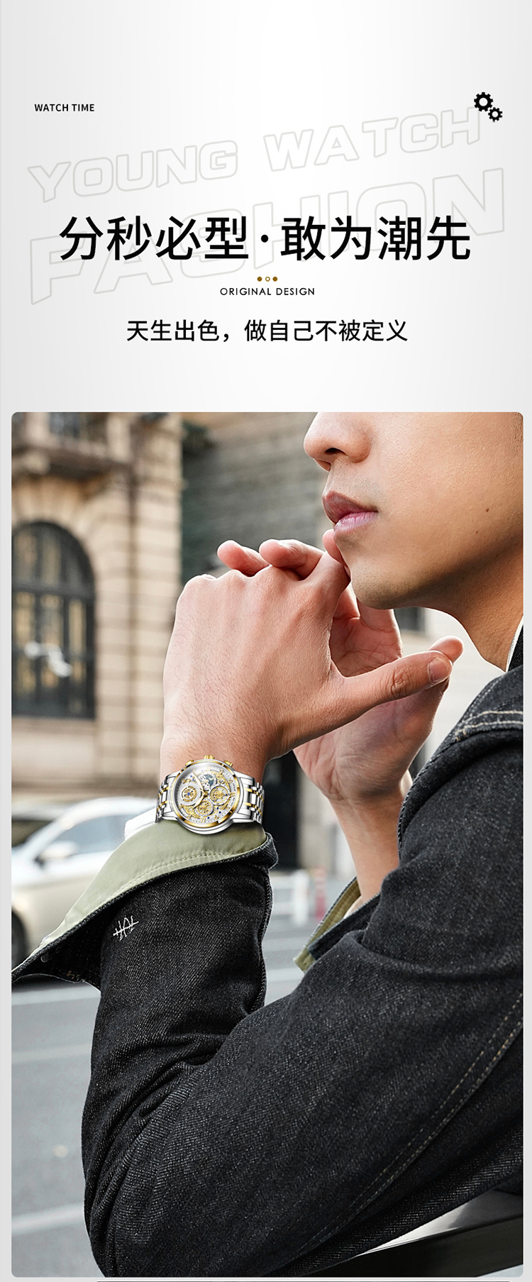 1、表盘设计匠心独运,层次分明,错落有致,宛如一幅精心雕琢的微型立体画卷,以其独特的设计、精准的走时、卓越的材质,完美诠释了何为“至臻”与“魅力”完美结合的男士石英手表。