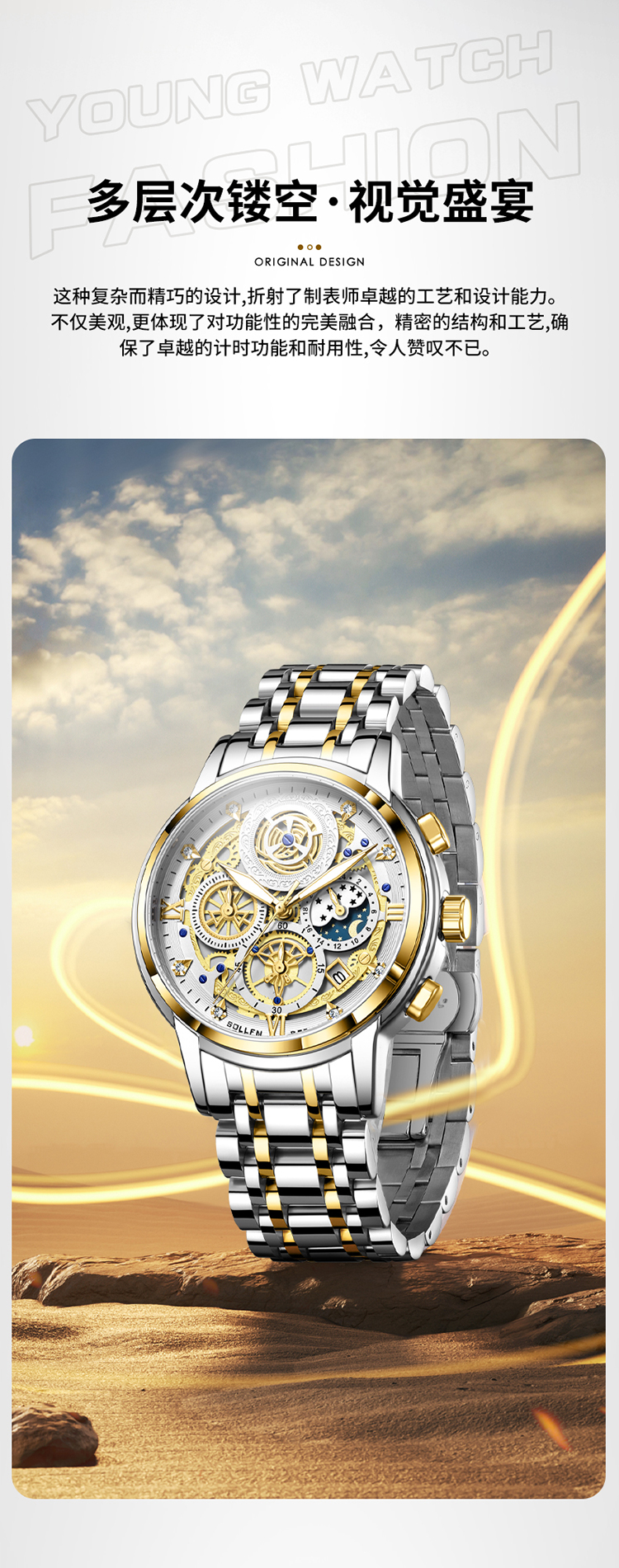 【SL715】梭伦至臻多功能魅力气质男士石英表