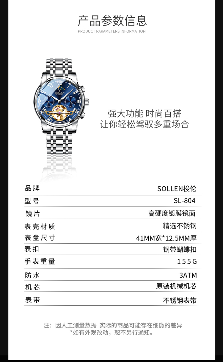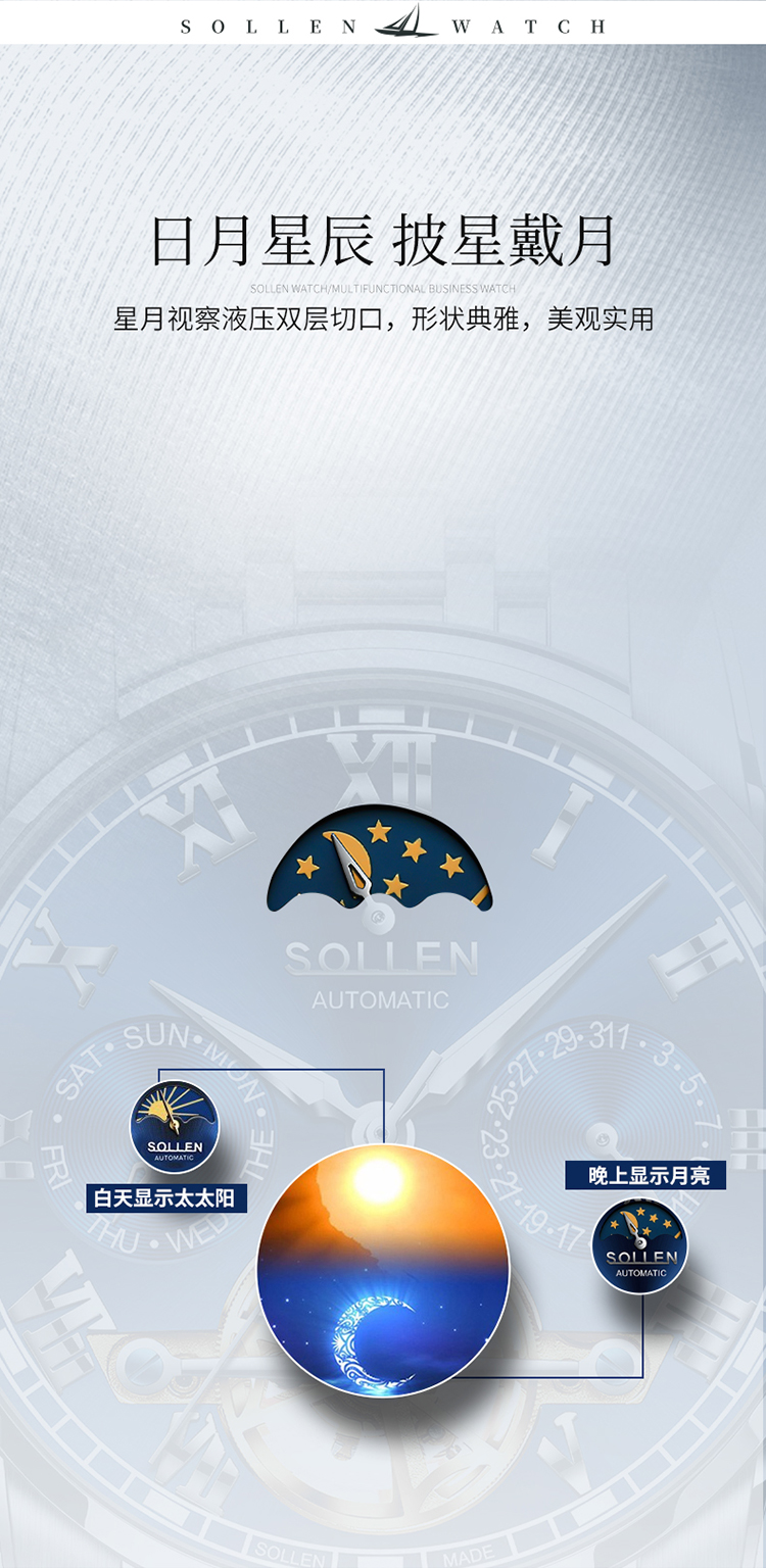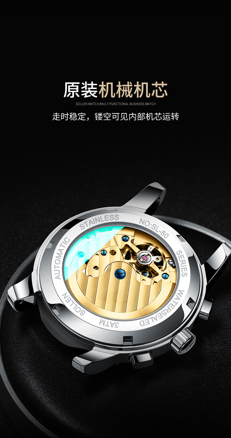 【SL804】梭伦原创设计多功能机械表