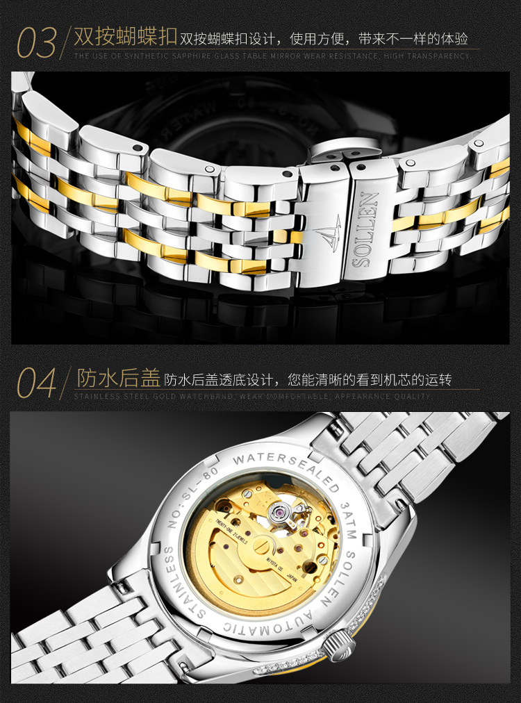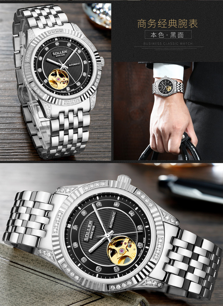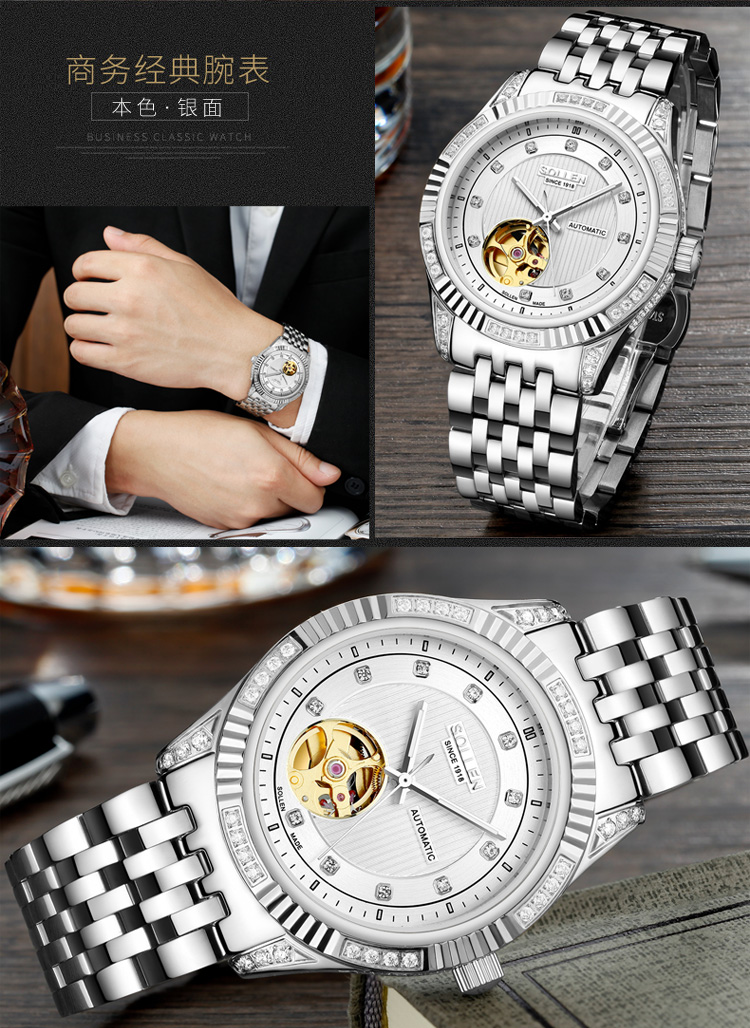 成为第一个评论 “【SL9006】梭伦宝曦系列商务系列男士机械表” 的人
