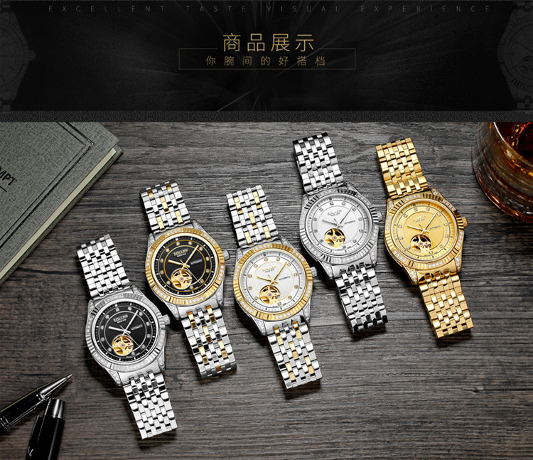 2.表盘设计,飞轮加上表盘镶锆石的技术,建单大气,适合各种场合。