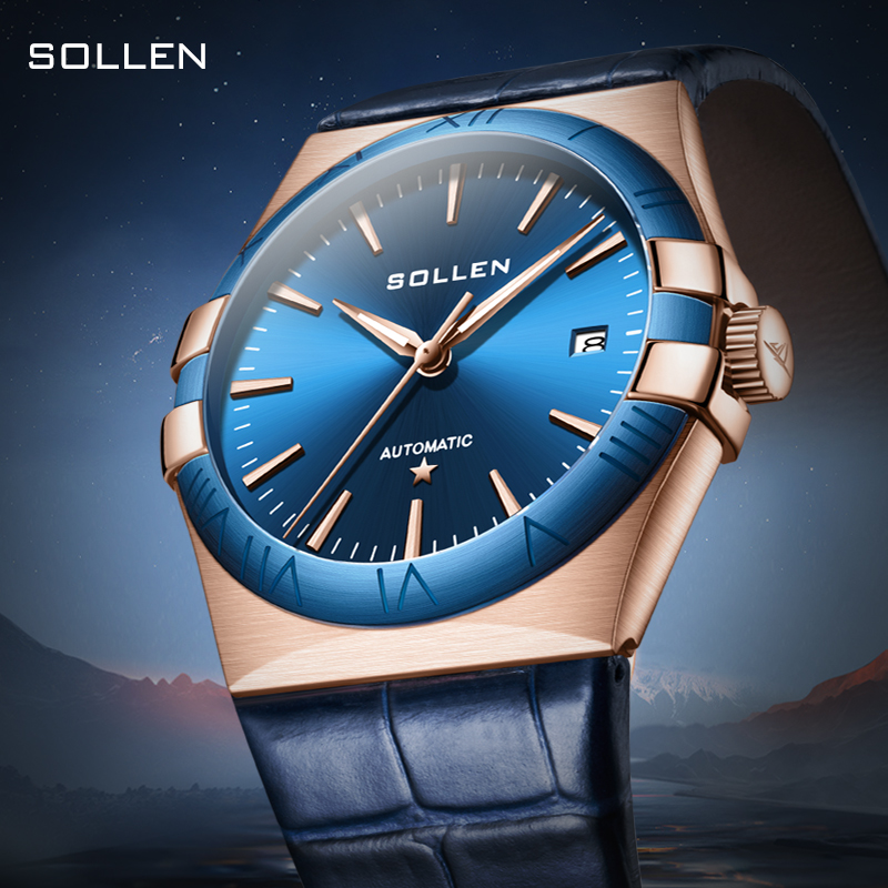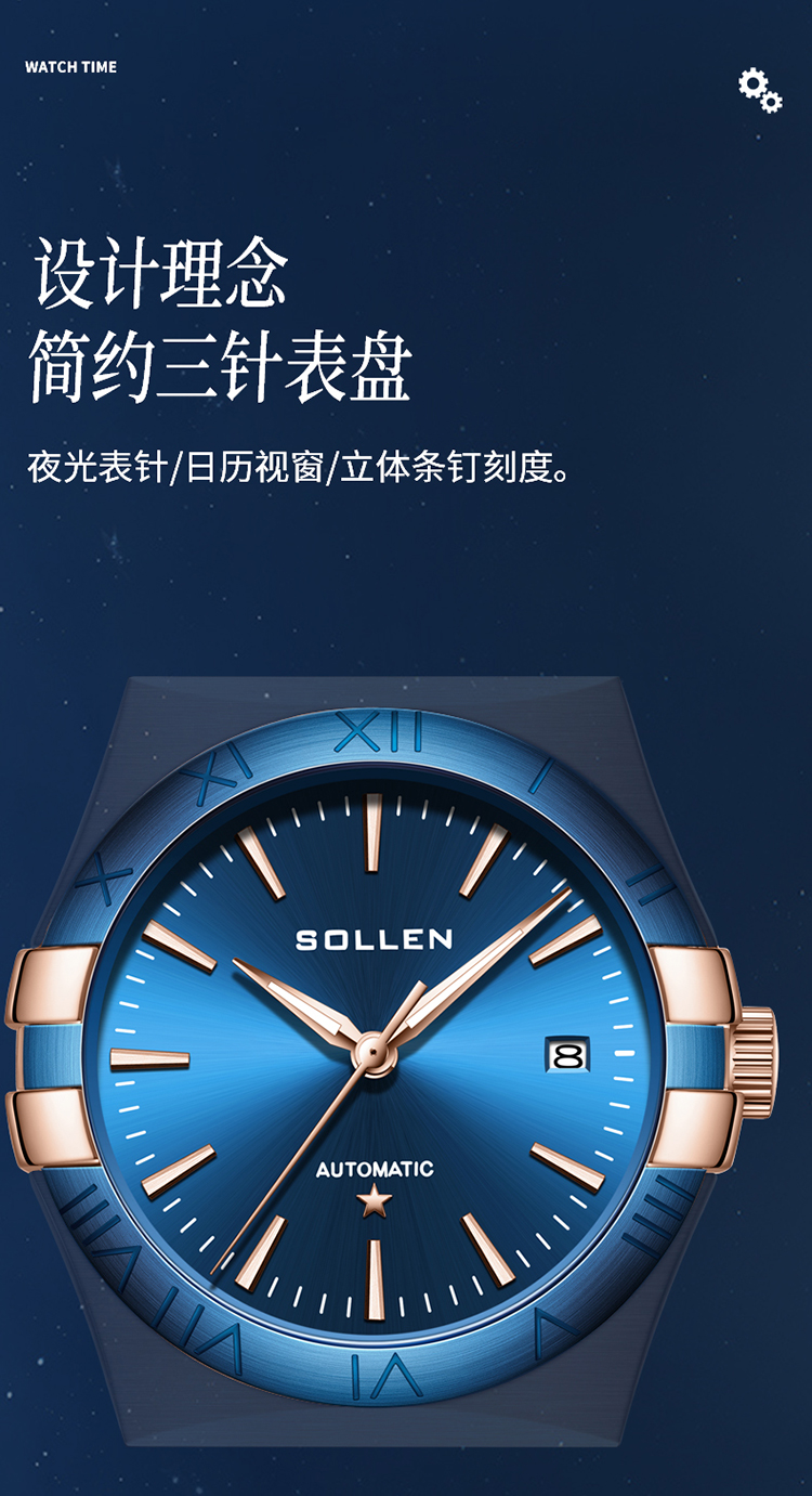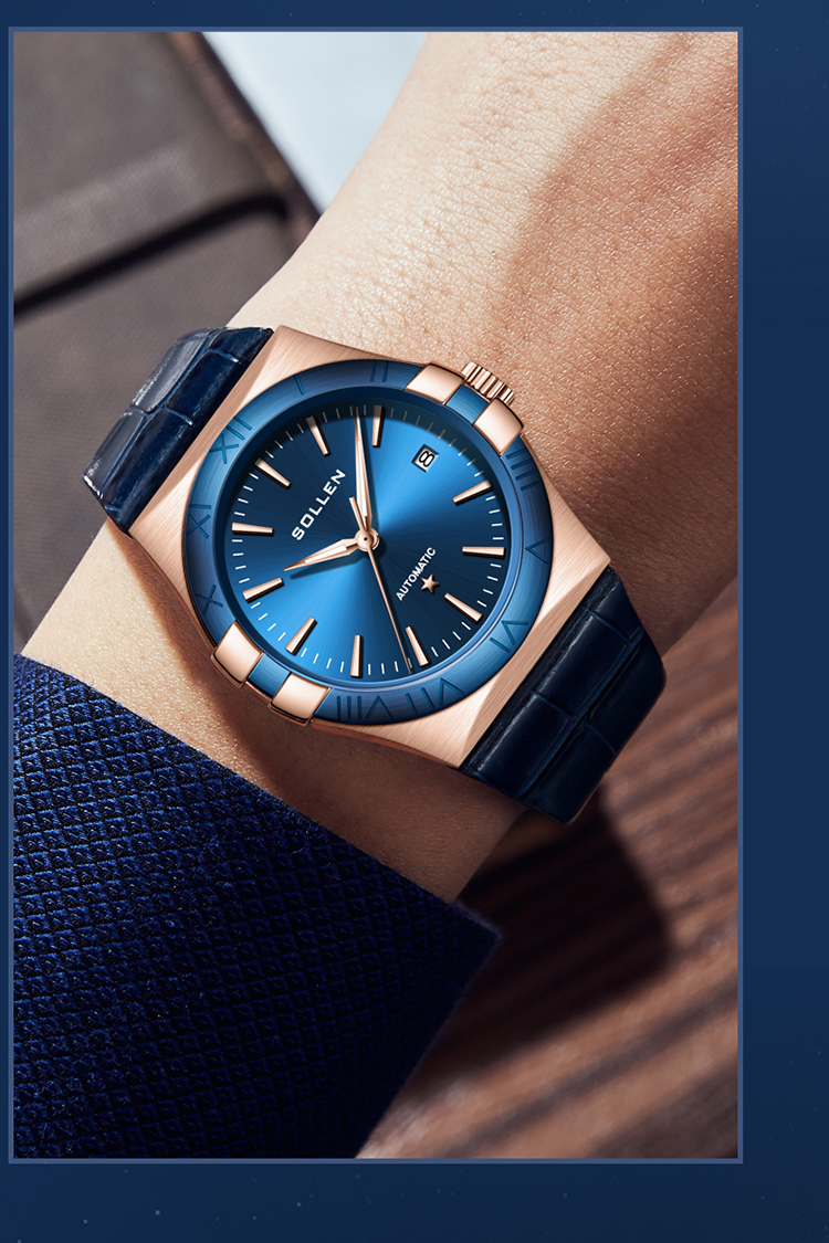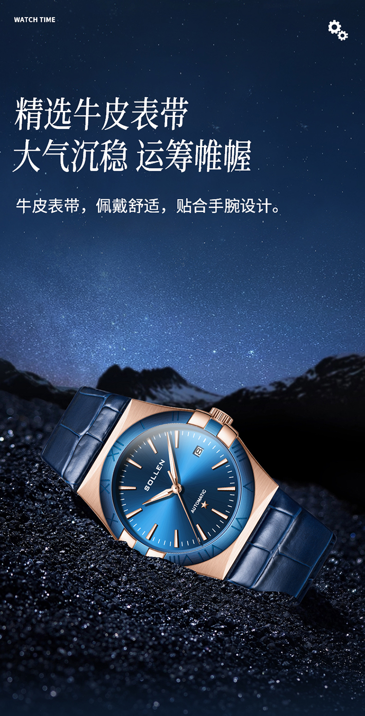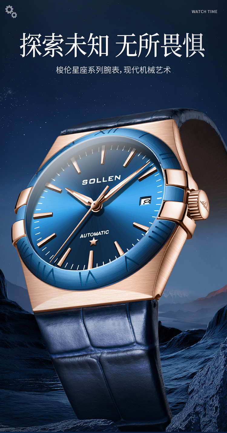 【SL9065】梭伦谜蓝星座系列男士商务蓝盘机械表