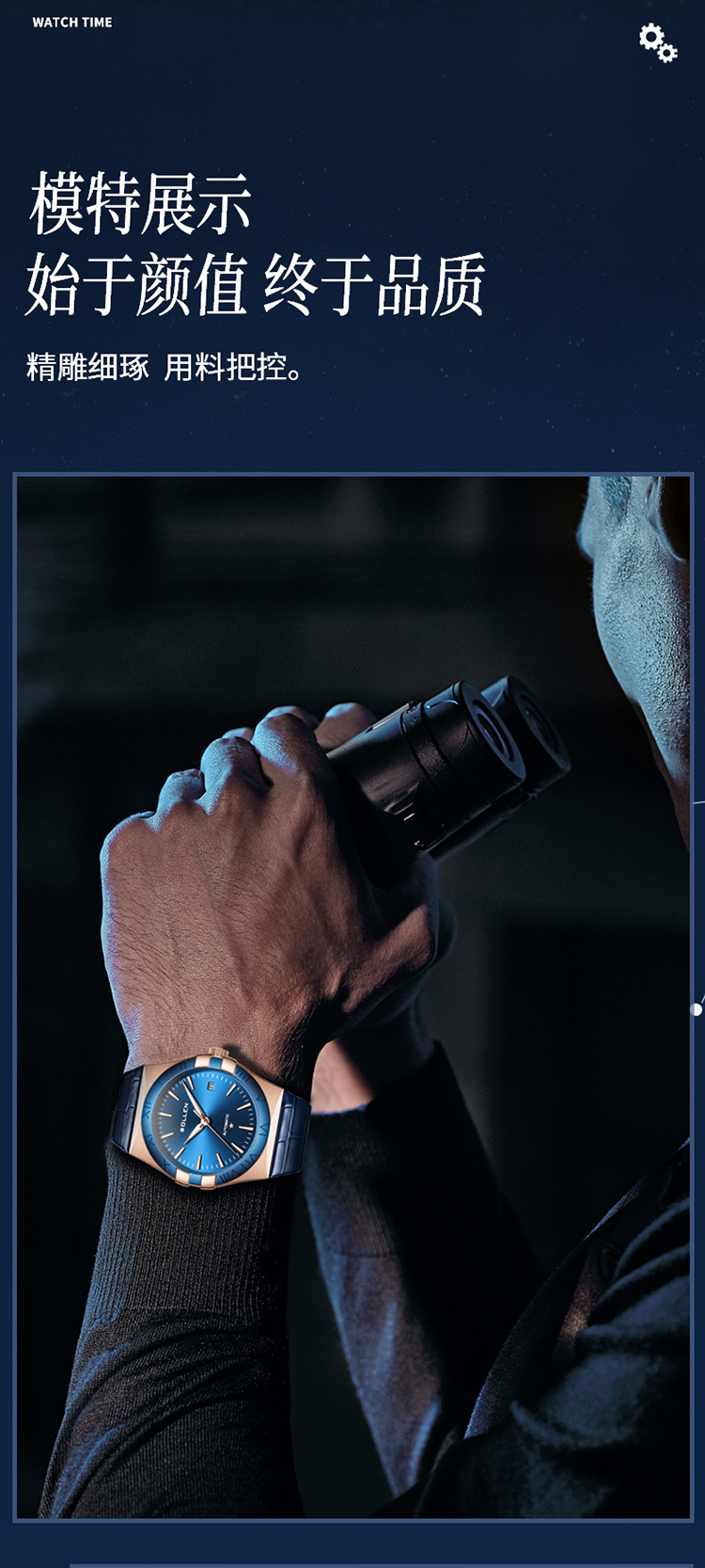 39mm不锈钢腕表,搭配罗马数字时标,3点钟位置设有日历窗,星徽标志点缀于6点钟位置,繁星璀璨,倘佯于无垠星河,深邃静谧的蓝色表盘,简约大气,气质上更显年轻和动感。