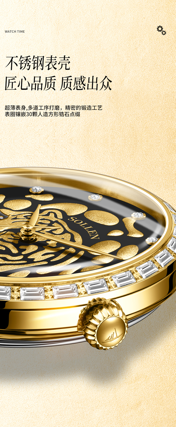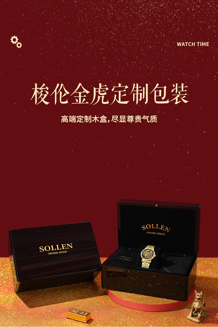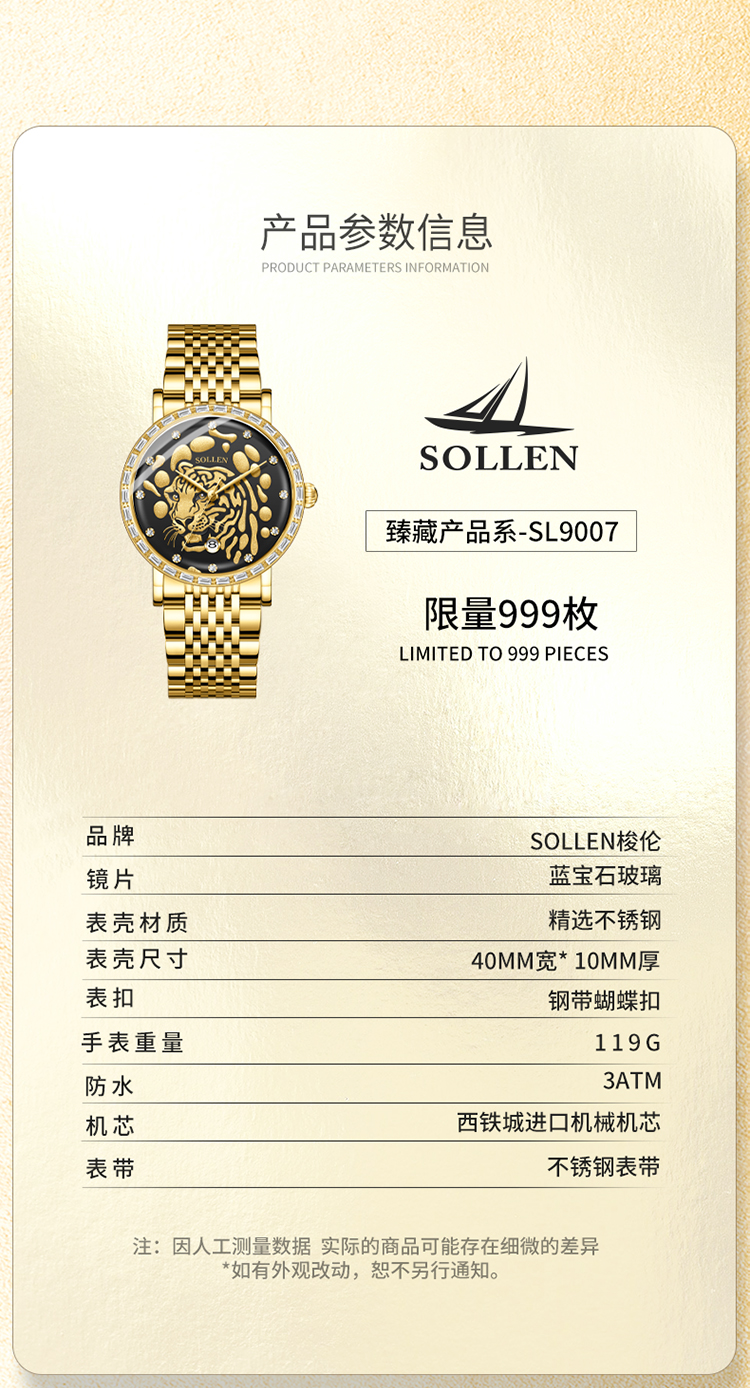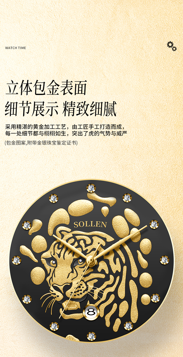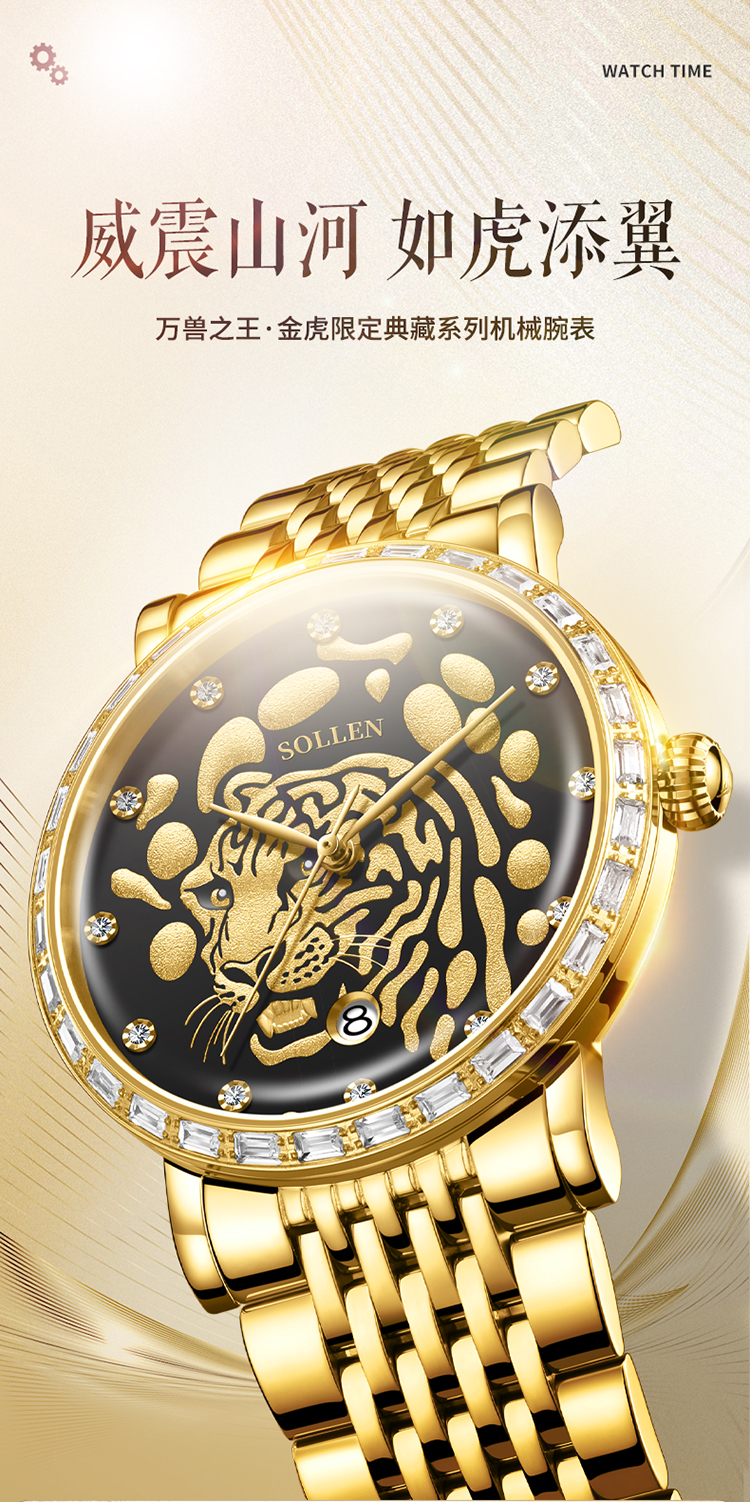 【臻藏瑞虎系列】梭伦限量真金真钻瑞虎系列钢带男士机械表