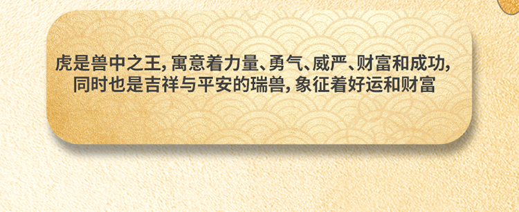 1.虎图案为真金包金,结3D立体油压工艺,耀眼夺目,如身披黄金甲;